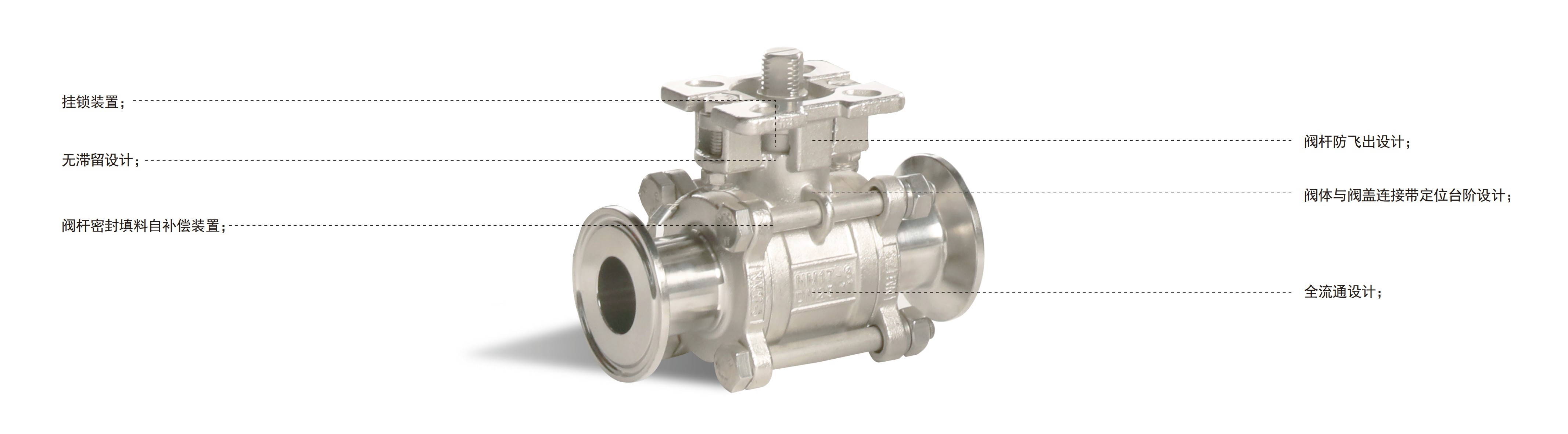 • 埃克美迅卫生球阀(Sanitary Ball Valve)是一种专为食品、饮料、制药、生物工程等卫生要求较高的行业设计的阀门,主要用于控制流体的启闭和调节。其核心特点是结构简单、密封性好、易于清洗,符合卫生标准(如3A、FDA、EHEDG等)。